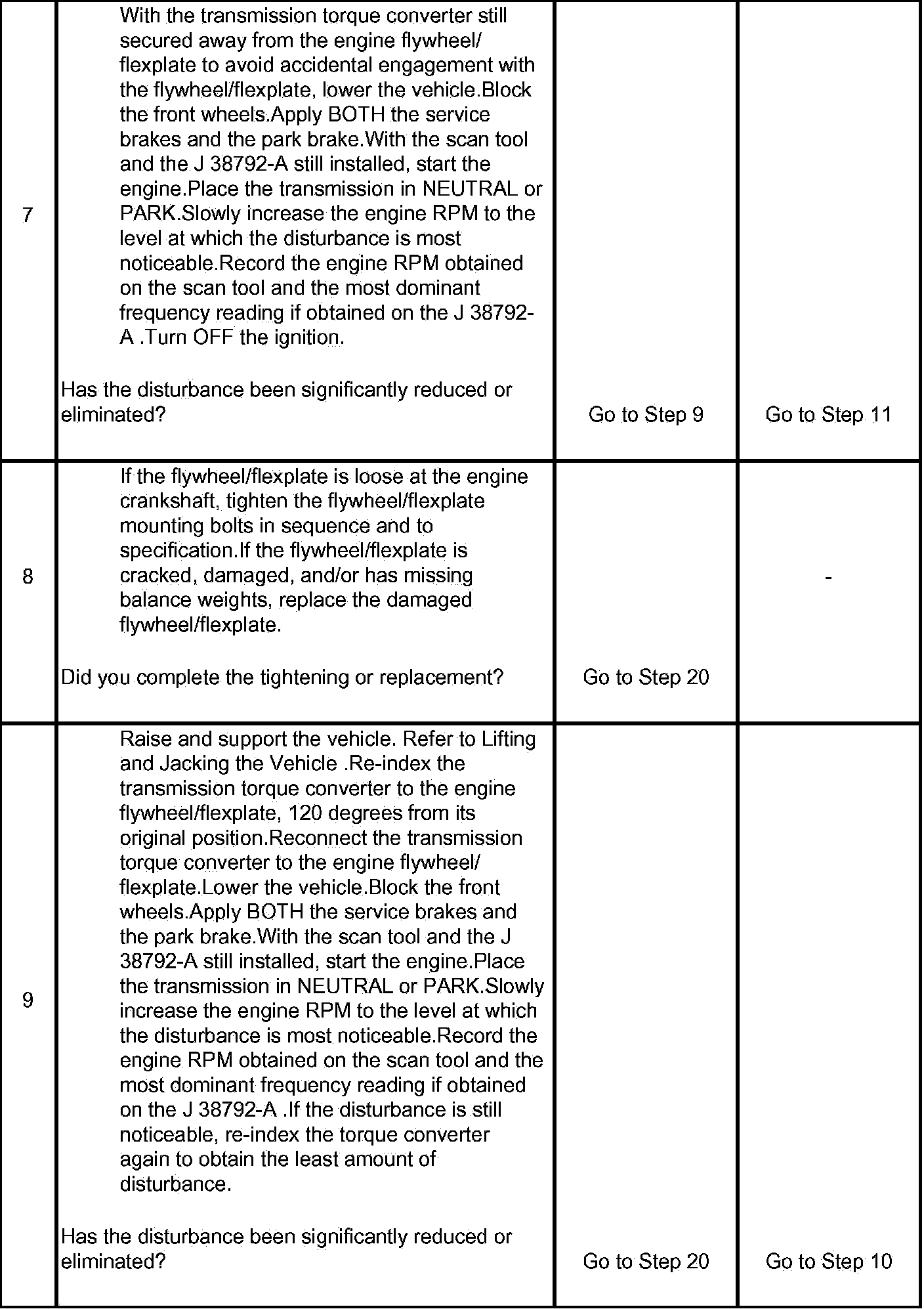 7. This step is designed to isolate the transmission from the engine to determine if the disturbance is related to the engine ONLY.