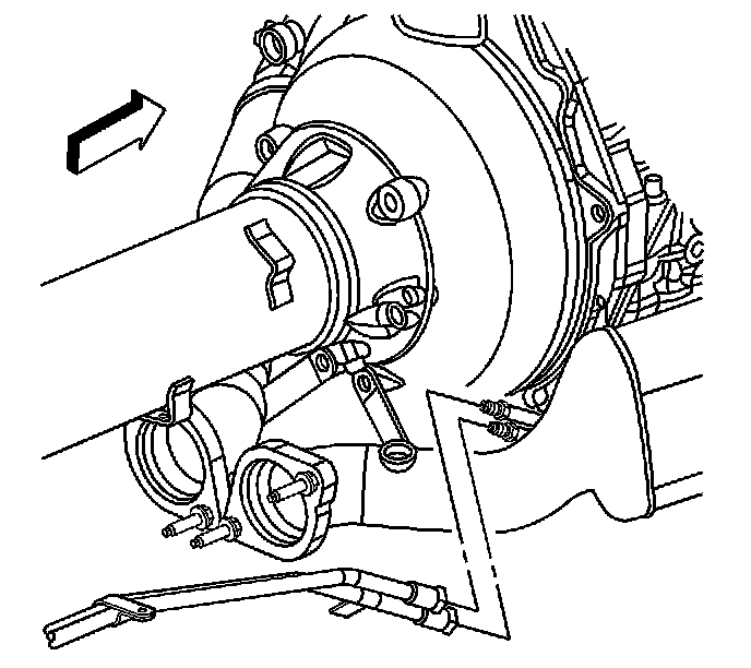 Disconnect the front transmission oil cooler (TOC) inlet and outlet lines from the rear TOC inlet and outlet lines.