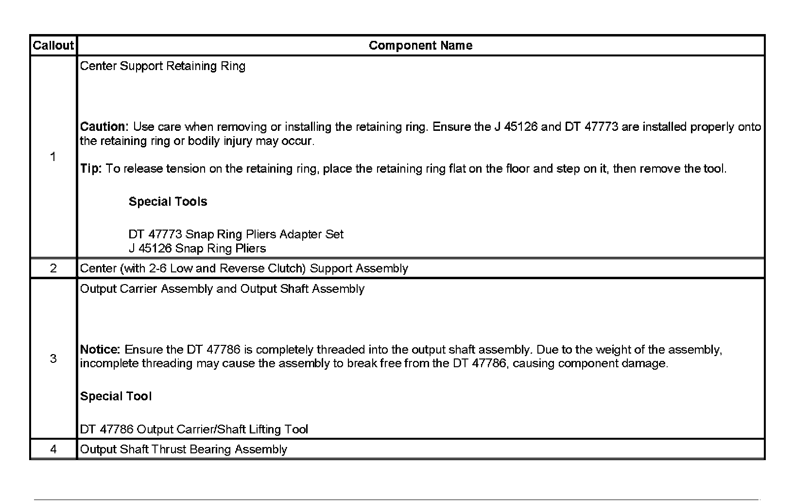 Center Support, Output Carrier and Output Shaft Removal