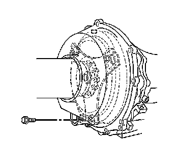 Important: Carefully WALK the transmission torque converter to the transmission flywheel through the torque converter access plug opening, if necessary. DO NOT use the bolts to draw the torque converter to the flexplate.