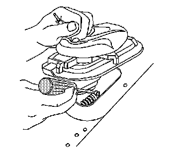 11. Using a small flat-bladed screwdriver or other suitable tool, release the tab retaining the park/lock cable to the slot on the shift control.