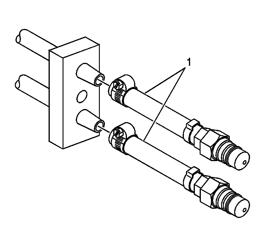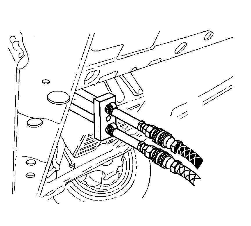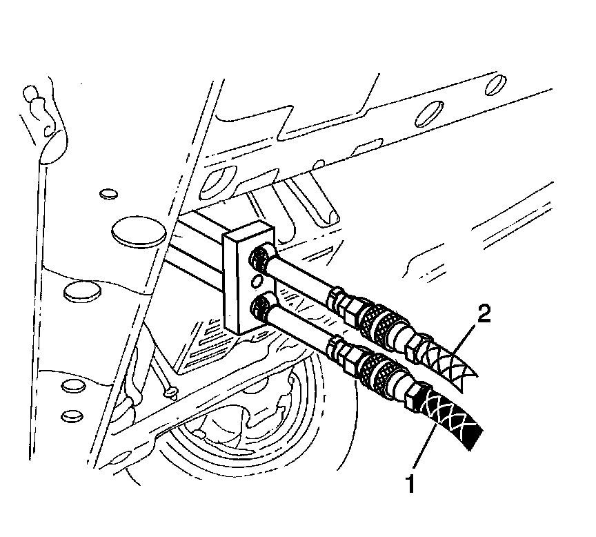 1. Connect the J 45096-30 (1) to the vehicle transmission oil cooler supply and return lines at the transmission.