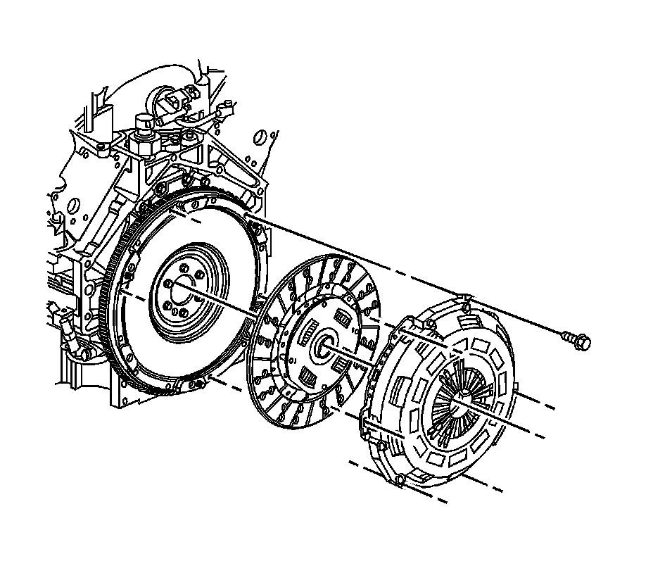 5. Install the clutch driven plate and clutch pressure plate to the engine flywheel.