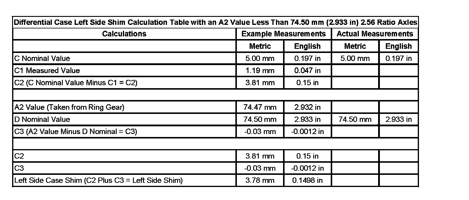 Spacer and Shim Specifications (Base)Spacer And Shim Specifications (Base) (Part 1):