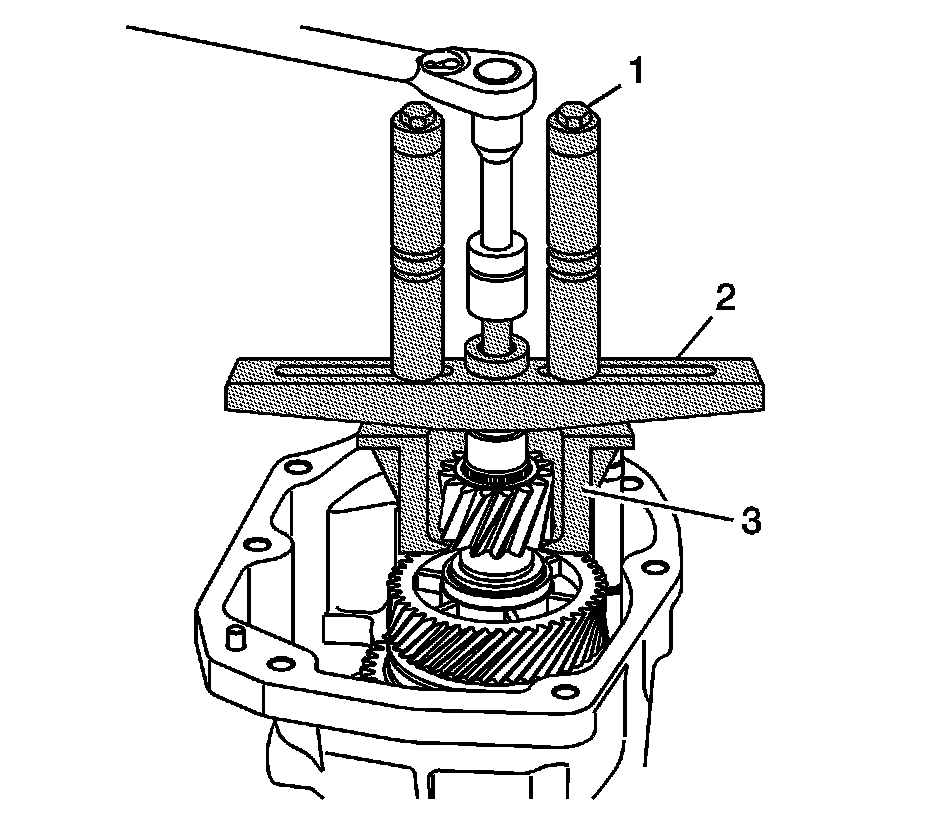 Remove the 5th/6th speed driven gear. Use the J 8433 (1), the J 39431-1 (3) and the J 39431-4 (2).