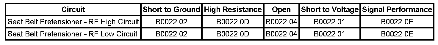 The seat belt pretensioner - RF high and/or low circuit is short to ground for 120 milliseconds.