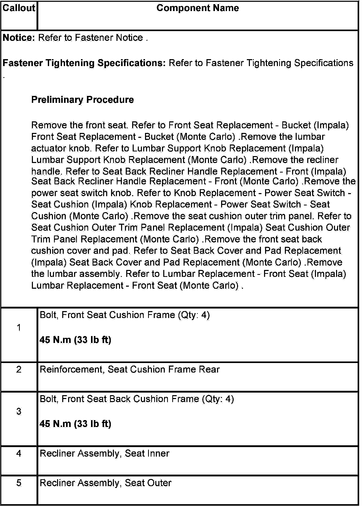 Recliner Replacement - Front (Impala)