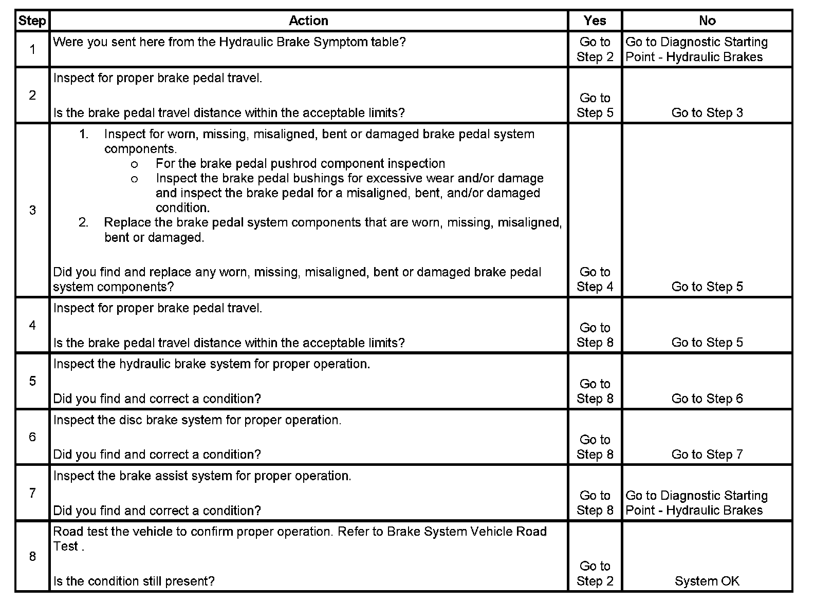 Brake Pedal Excessive Travel