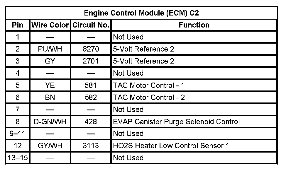 Engine Control Module (ECM) C2 (Pin 1 To 15):