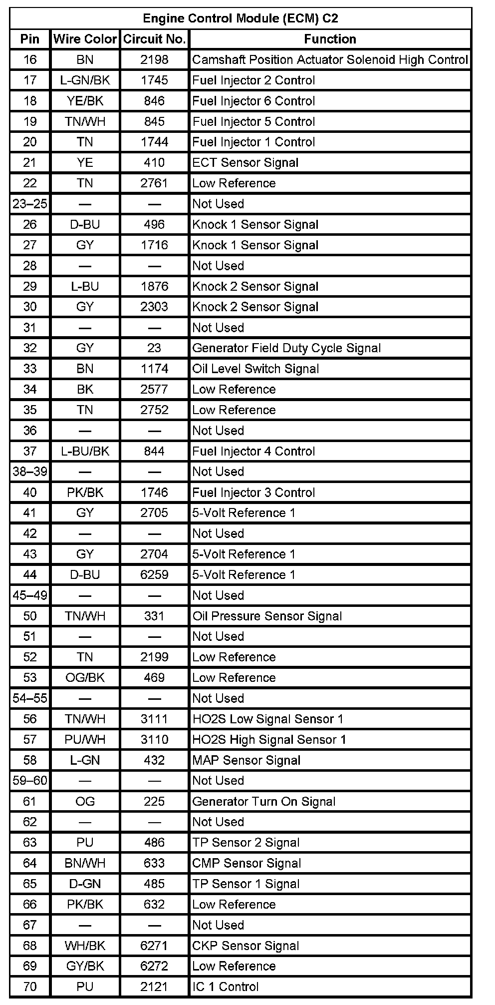 Engine Control Module (ECM) C2 (Pin 16 To 70):