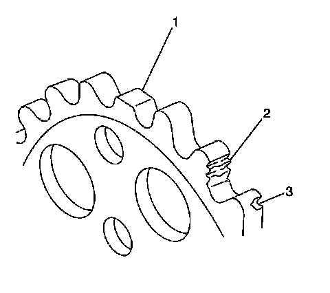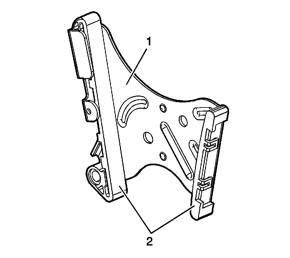 5. Inspect the timing chain tensioner (1) and timing chain tensioner slides (2) for excessive wear or cracks. Repair or replace as required.