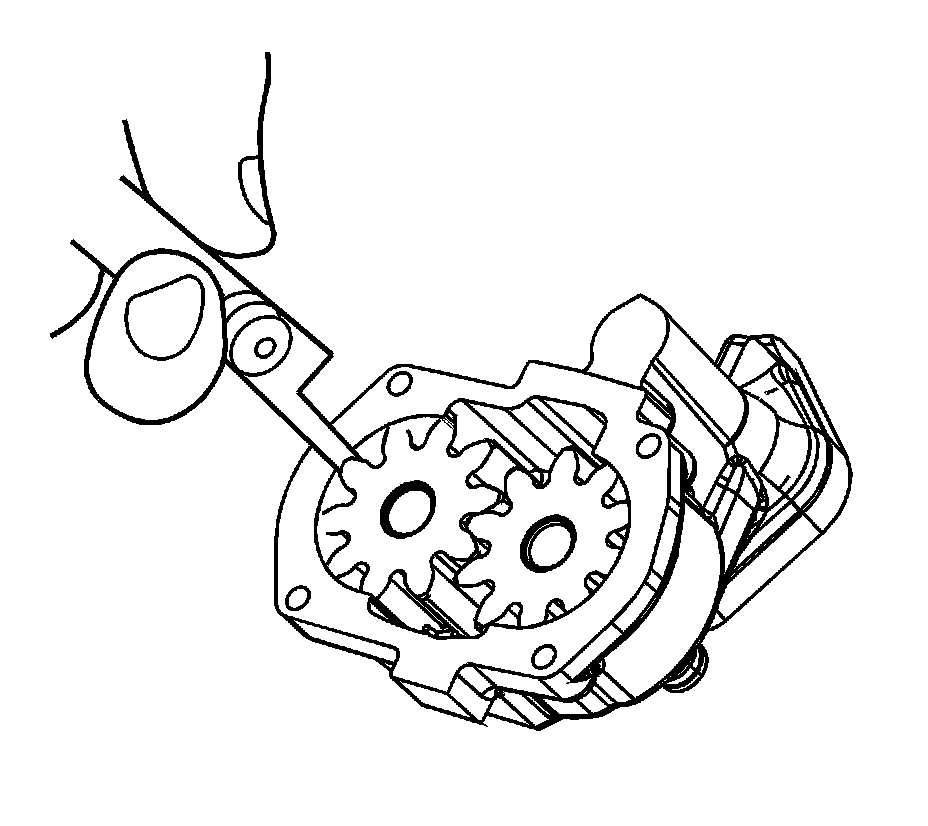 11. Measure the oil pump gear lash. Install the gears, and measure in several places.