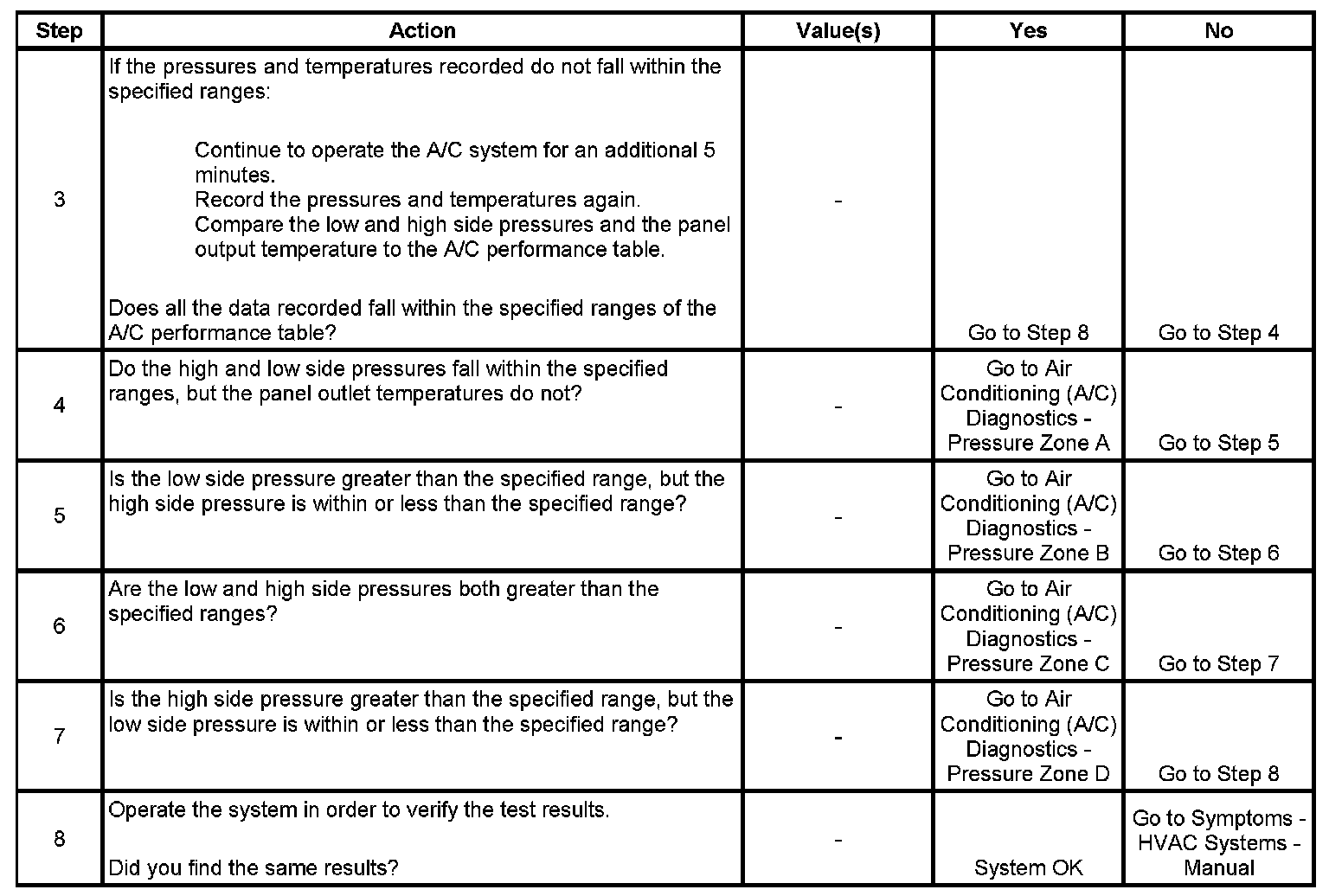 1. This step determines if the A/C system has at least the minimum refrigerant charge required to operate the system without damage.