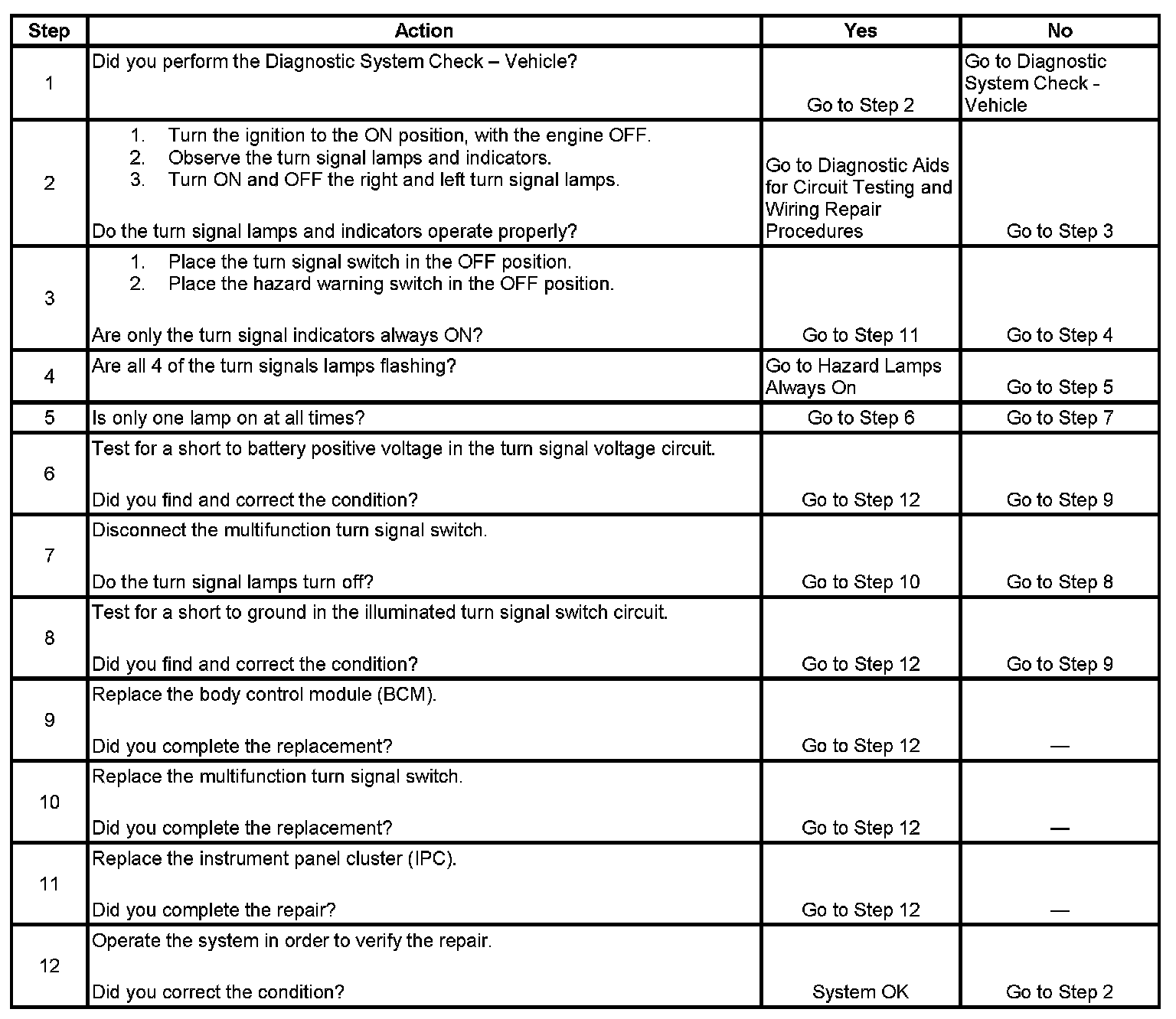 Turn Signal Lamps and/or Indicators Always On or Flashing