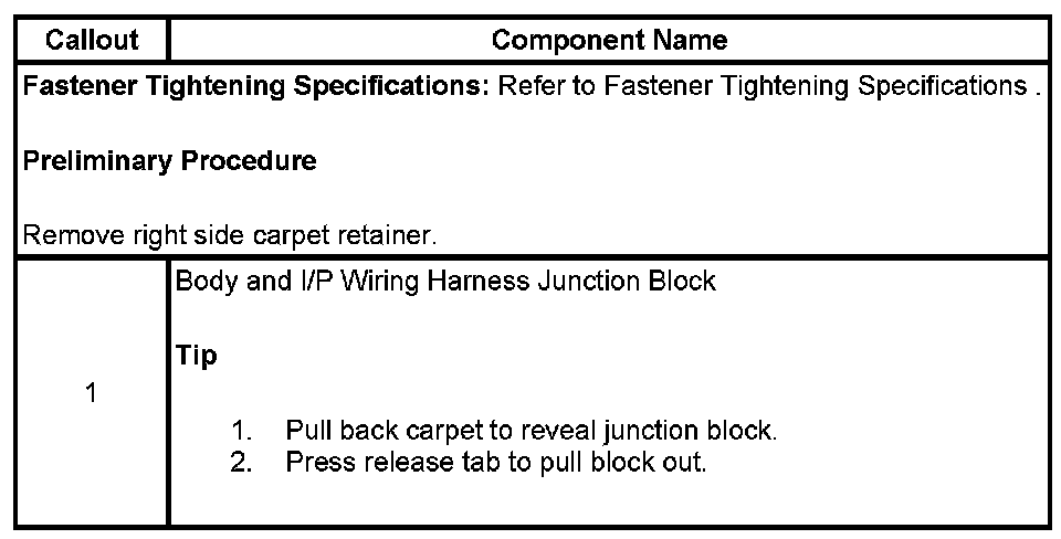 Instrument Panel Electrical Center or Junction Block Replacement - Right Side (Impala)
