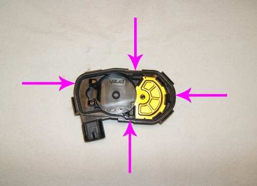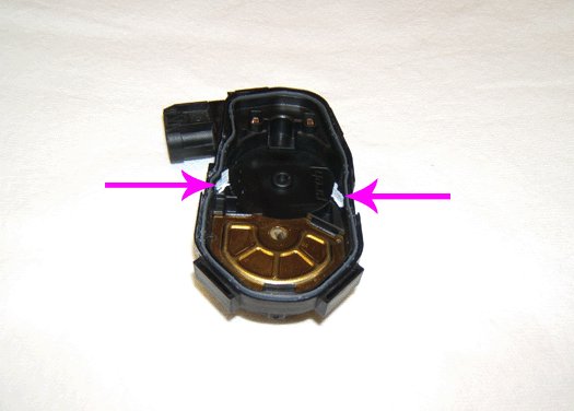 The three TP sensor cover alignment tabs are highlighted in white for identification purposes only.