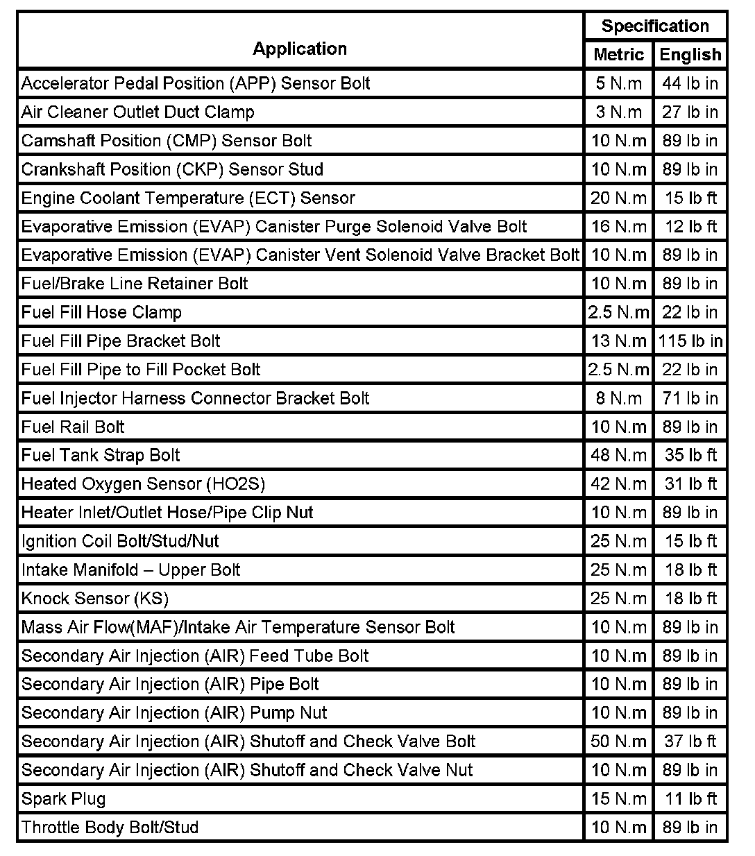 Fastener Tightening Specifications