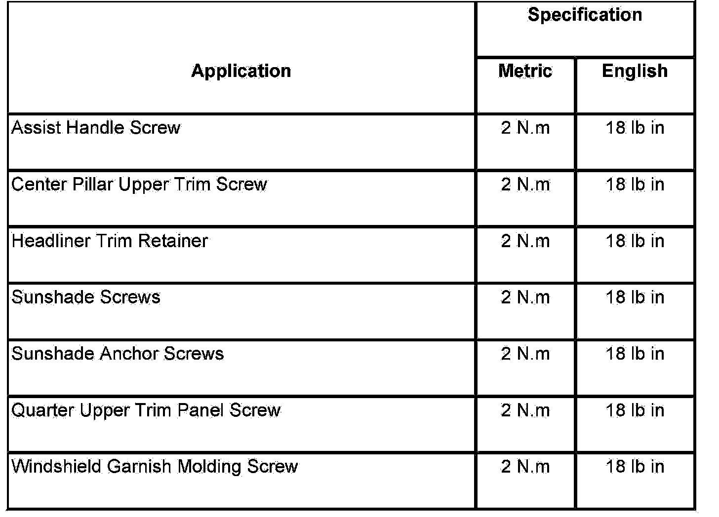 Fastener Tightening Specifications