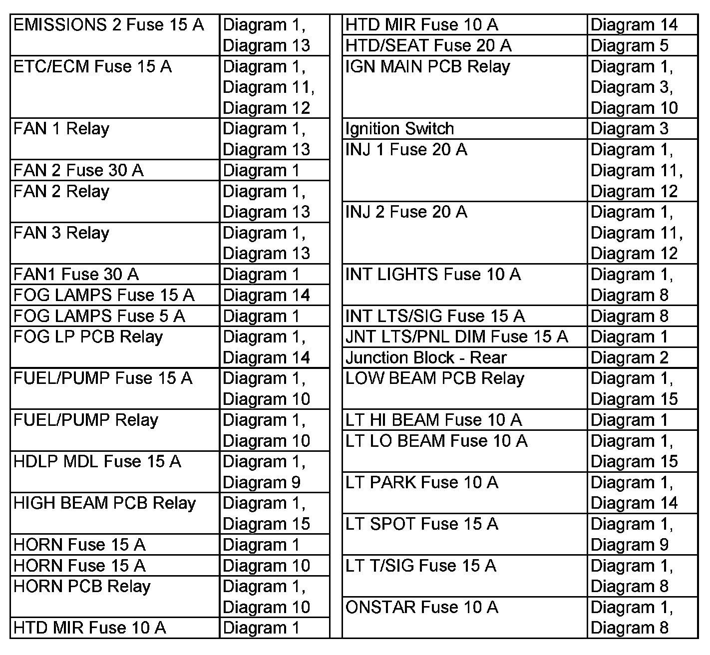 Power Distribution Diagram Index