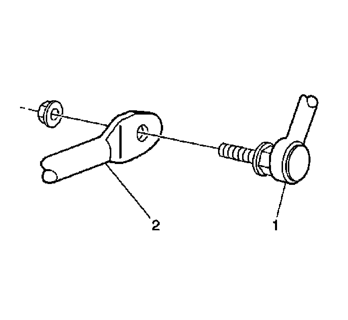 3. Install the lower stabilizer shaft link nut to the stabilizer shaft link (1) and the stabilizer shaft (2).