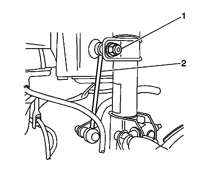 3. Remove the stabilizer shaft link nut from the stabilizer shaft link (1) and the strut.