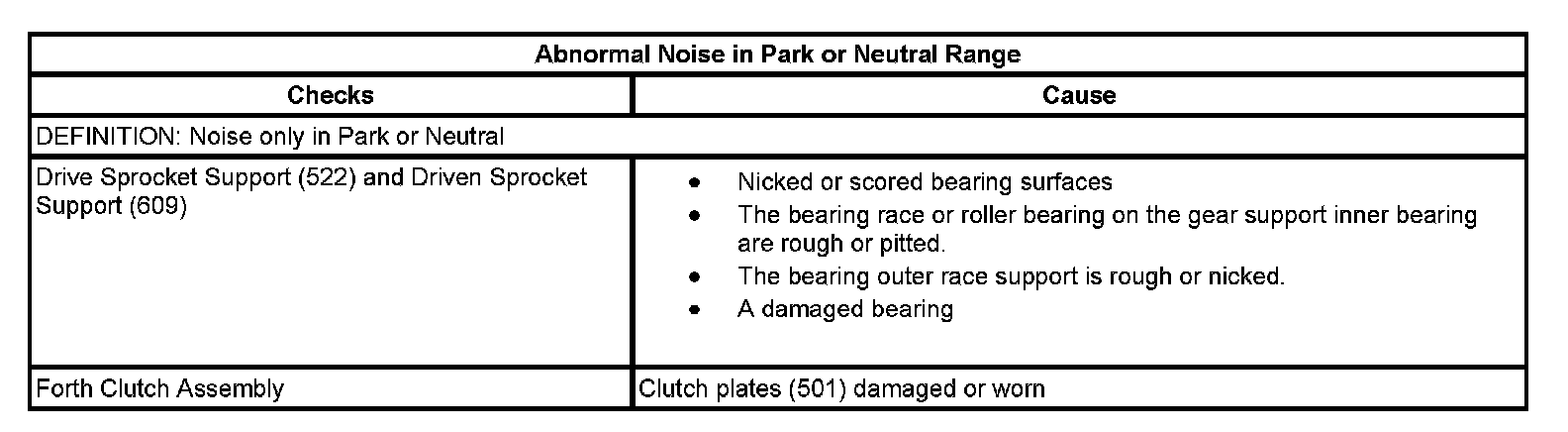 Abnormal Noise in Park or Neutral Range