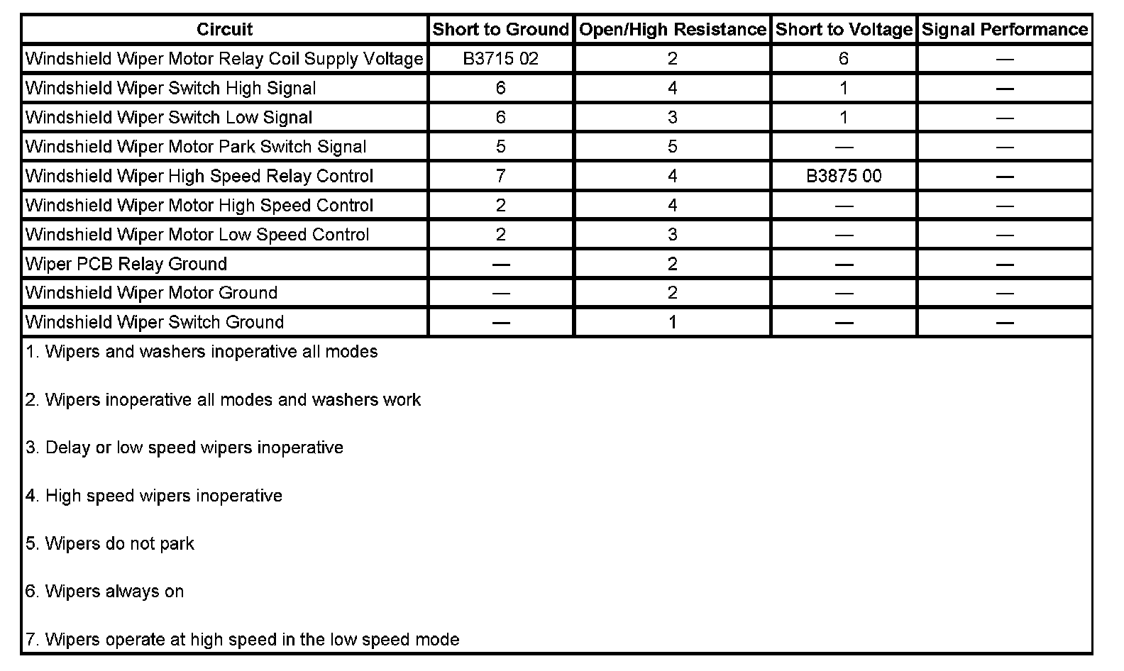 * A short to B+ on any of the wiper/washer switch signal circuits will open the ground trace in the wiper switch.