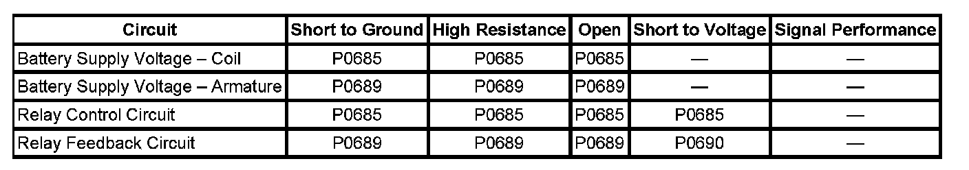 DTC P0685, P0689, or P0690