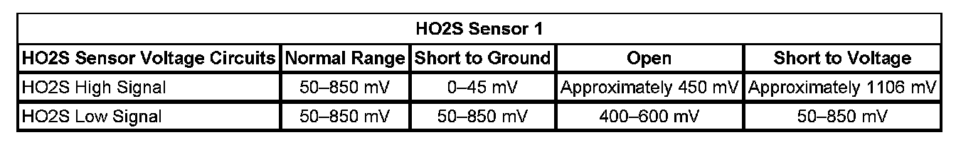 - The control module detects that the HO2S 1 voltage is less than 100 mV.