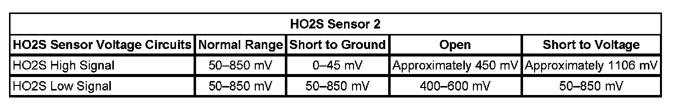 - The control module detects that the HO2S 2 voltage is less than 715 mV.