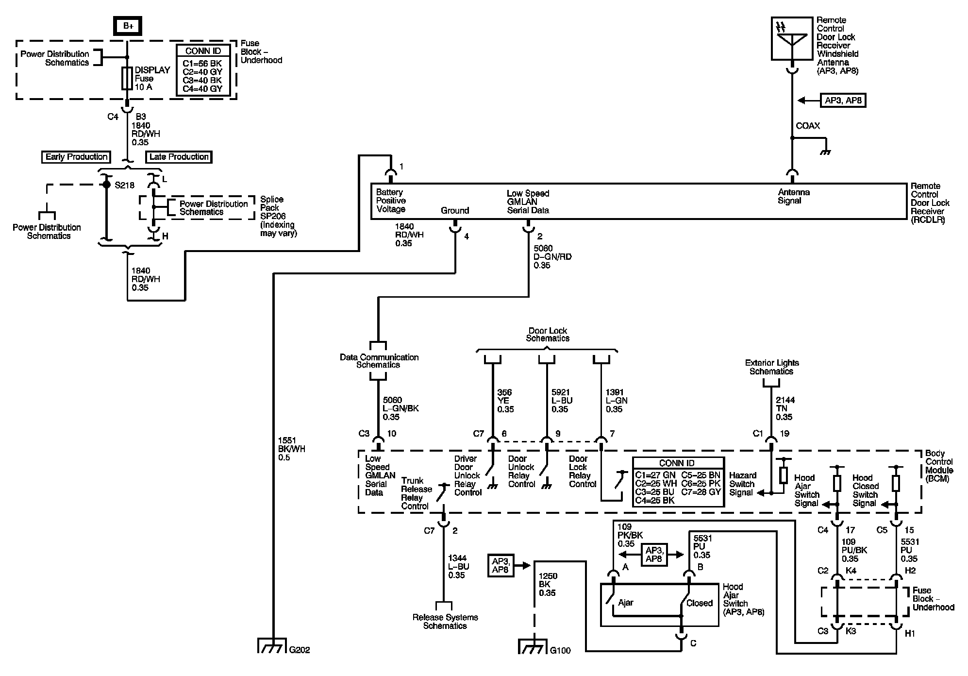 Locations: The locations for the Connectors, Grounds, Splices, and Grommets shown within these diagrams can be found via their numbers at Vehicle Locations. Locations