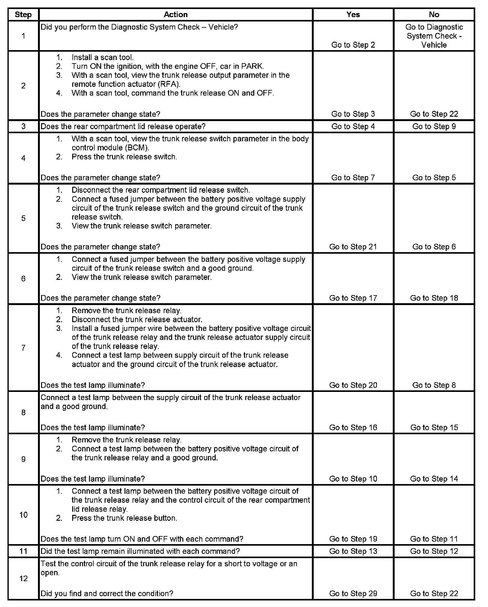 Trunk Release Inoperative