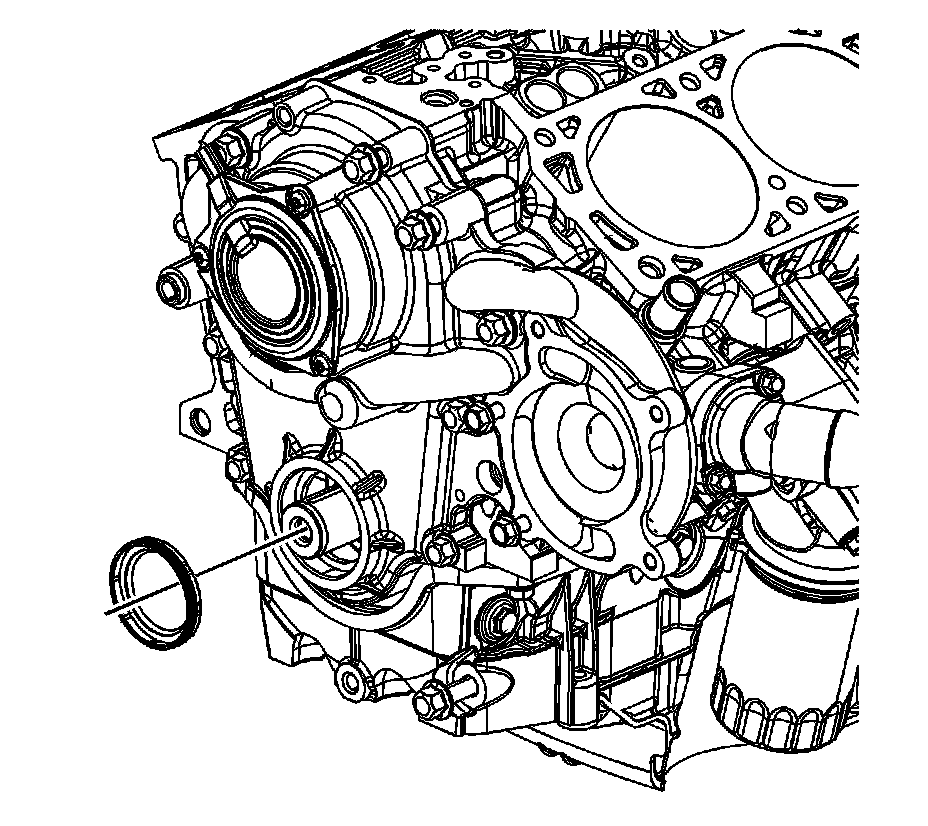 2. Align the J 35468 and the crankshaft front oil seal with the engine front cover and crankshaft.
