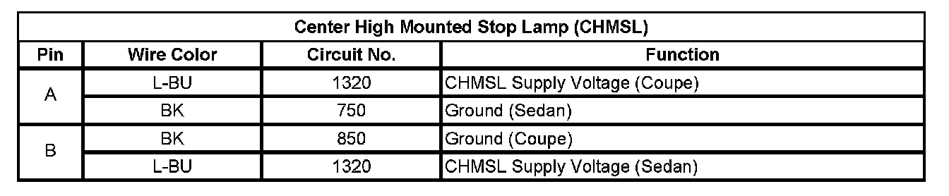 Center Mounted Brake Lamp: Diagrams