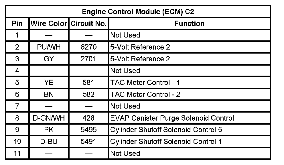Engine Control Module (ECM) C2 (Pin 1 To 11):