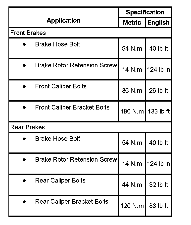 Fastener Tightening Specifications: