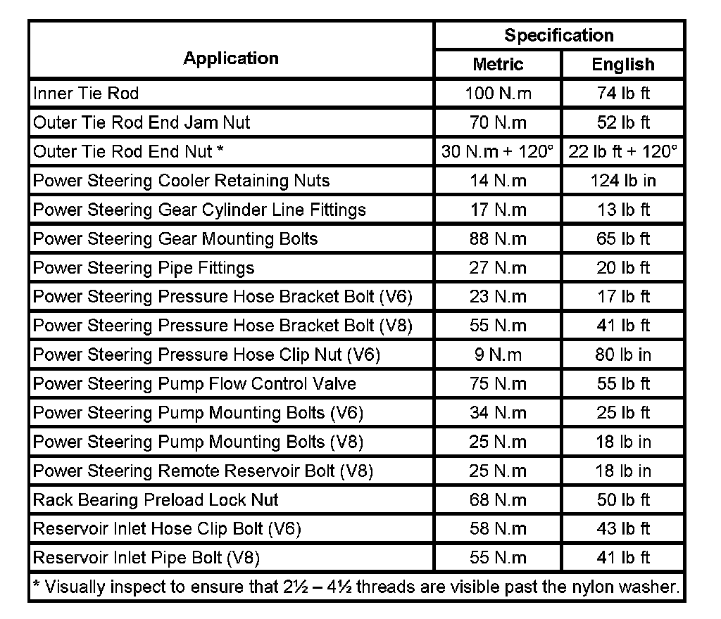 Fastener Tightening Specifications: