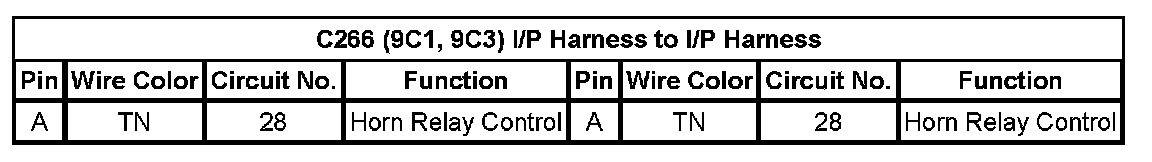 C266 (9C1,9C3) I/P Harness To I/P Harness (Pin A):