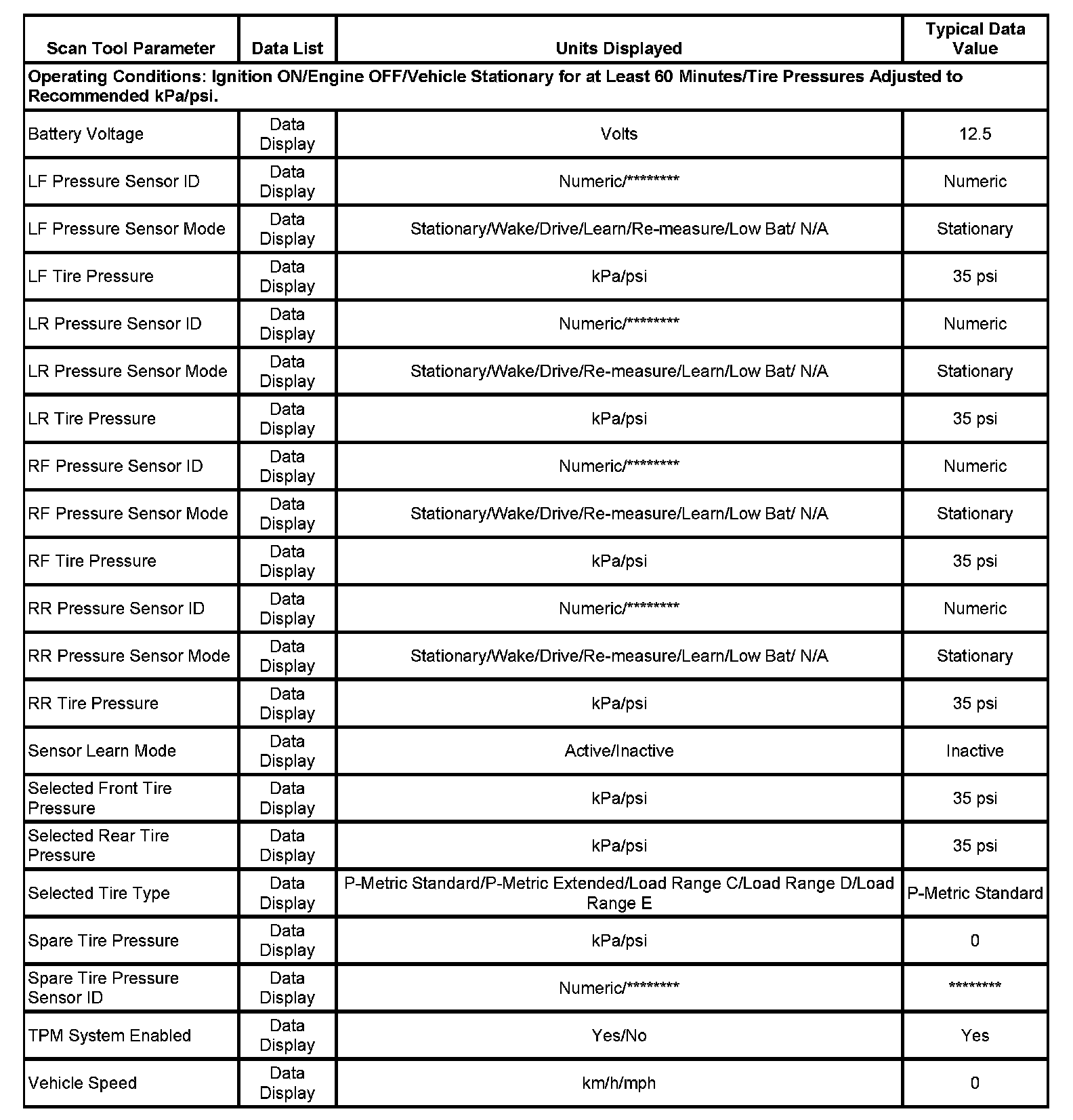 Scan Tool Data List: