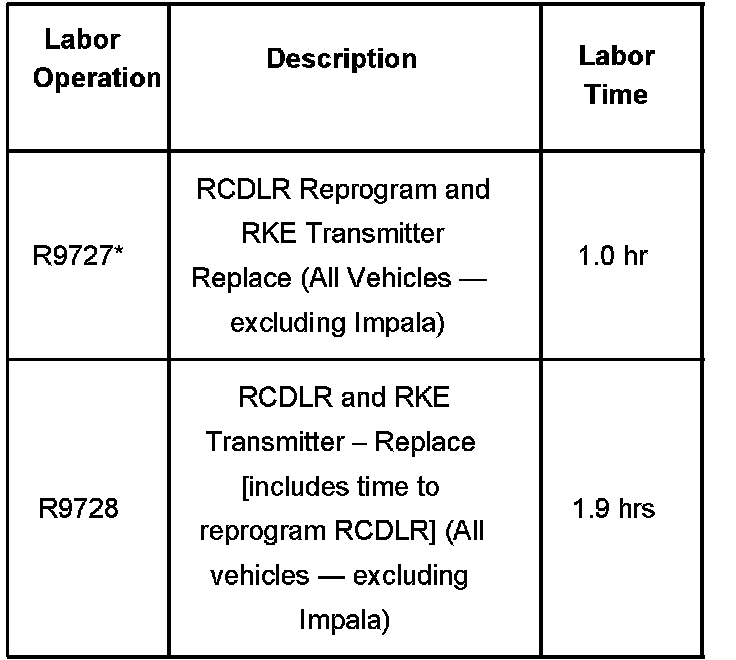 Remote Keyless Entry [RKE] Inoperative, Poor Range, Tire Pressure Monitor [TPM] Message Displayed (Replace Transmitter and Replace/Reprogram Remote Control Door Lock Receiver [RCDLR])