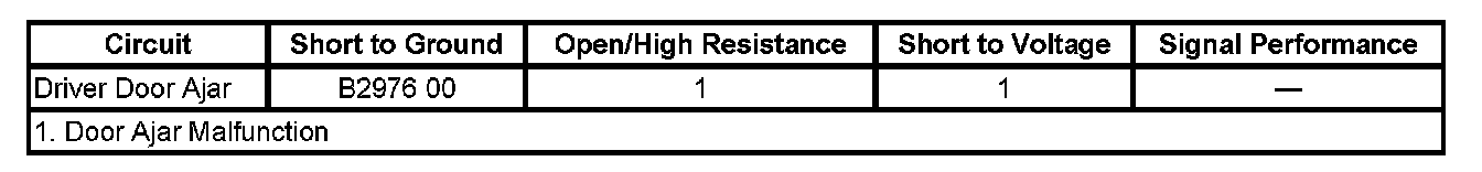 When the driver door lock is in to the AJAR position, ground is applied through the switch to the body control module (BCM). The BCM then sends a class 2 message to the instrument panel cluster to illuminate the ajar indicator.