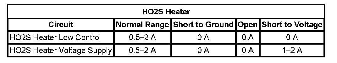 * The ECM detects that the HO2S 1 heater current parameter is more than 3.125 amps or less than 0.25 amp.