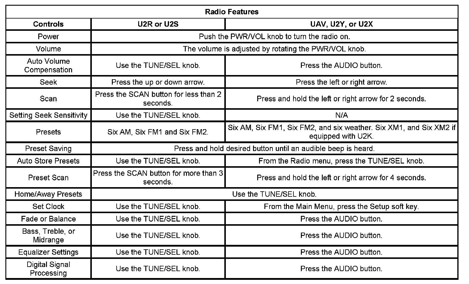 The following list shows the radios available for this vehicle: