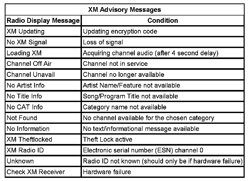 XM is a national satellite radio service that offers up to 100 coast to coast channels including music, news, sports, talk and children's programming. XM provides digital quality audio and text information, including song title and artist name. A service fee is required in order to receive the XM service. For more information, contact XM at www.xmradio.com or call 1-800-852-9696.