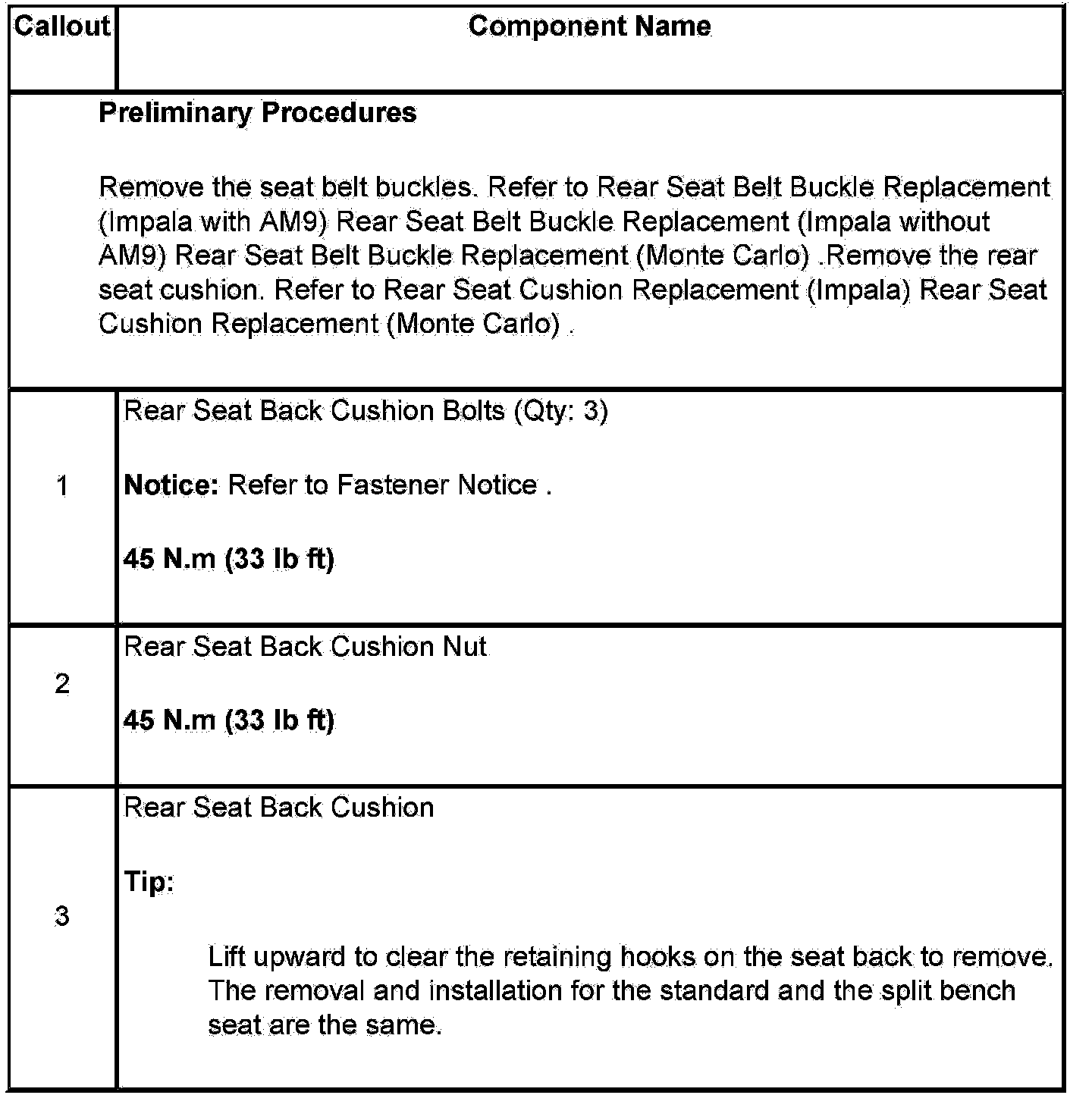 Seat Back Replacement - Rear (Impala)