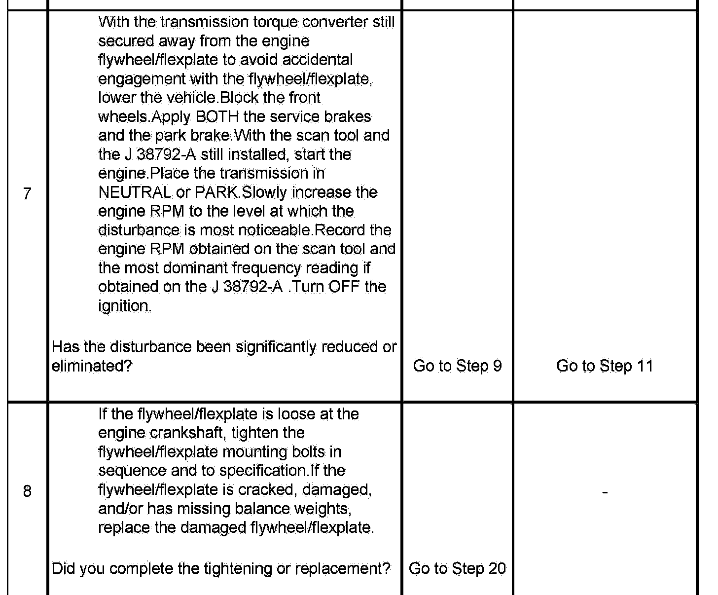 7. This step is designed to isolate the transmission from the engine to determine if the disturbance is related to the engine ONLY.