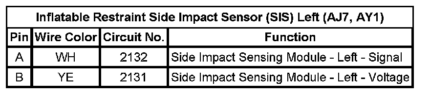 Inflatable Restraint Side Impact Sensor (SIS) - Left (AJ7, AY1)