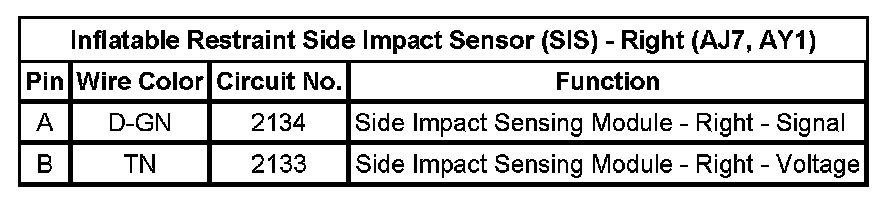 Inflatable Restraint Side Impact Sensor (SIS) Right (AJ7, AY1)