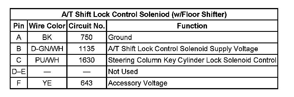 A/T Shift Lock Control Solenoid (W/Floor Shifter):