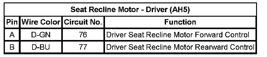 Seat Recline Motor - Driver (AH5)